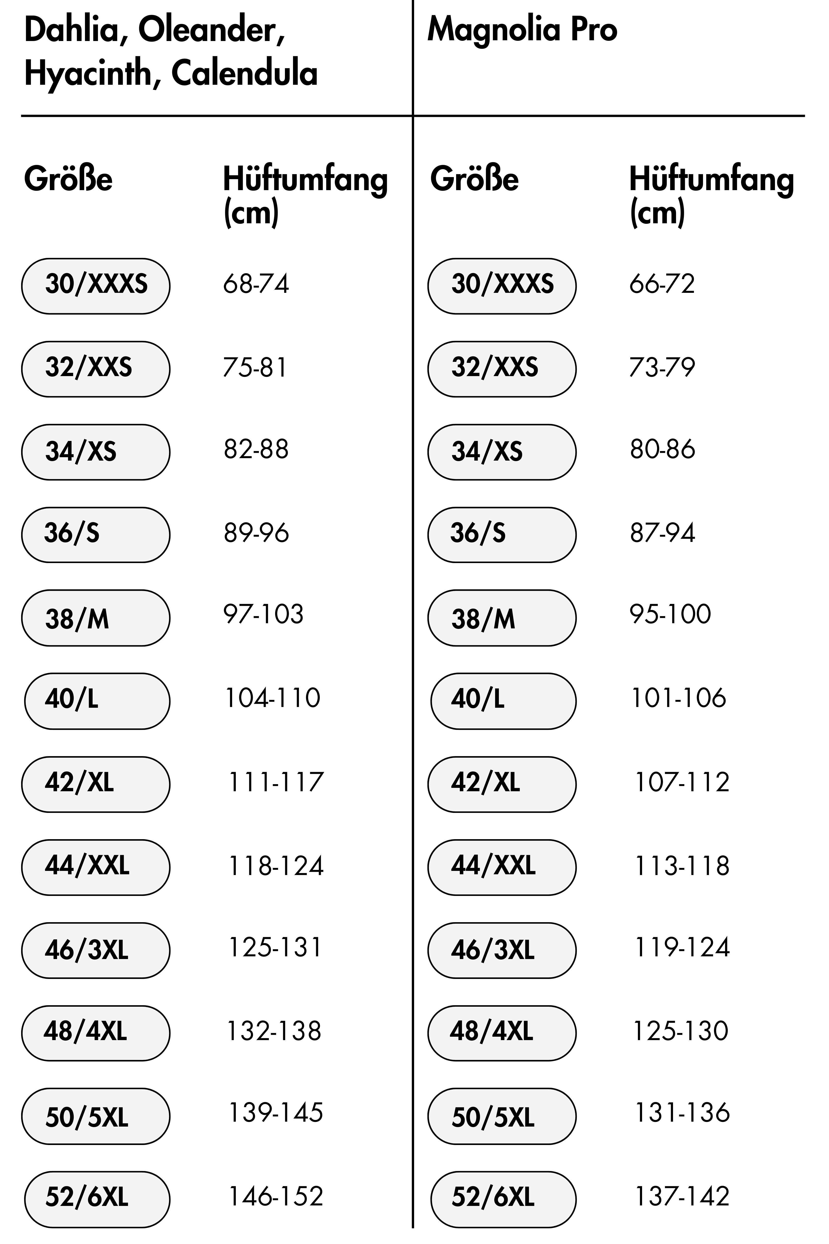 Größentabelle: